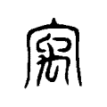 甲骨文作,由「宀」、「于」二字構成。從宀,示其為房屋的結構。從于,聲符,注明音讀。金文以下迄乎楷書,並承之而定體。篆文異體或從宀、禹聲。在六書中屬於形聲。